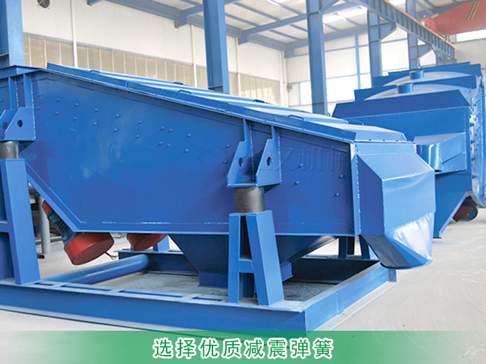 砂巖礦用振動(dòng)篩因體型較大所以對(duì)減震彈簧的質(zhì)量要求非常嚴(yán)格,劣質(zhì)彈簧會(huì)在使用一段時(shí)間后,發(fā)生彈簧崩裂、彈性不足等問題來影響篩分效率,甚至?xí)斐稍诤Y分過程中箱體振裂。所以需要選用優(yōu)質(zhì)減震彈簧,它減震效果和承載力都很好,可有效延長設(shè)備使用的壽命。